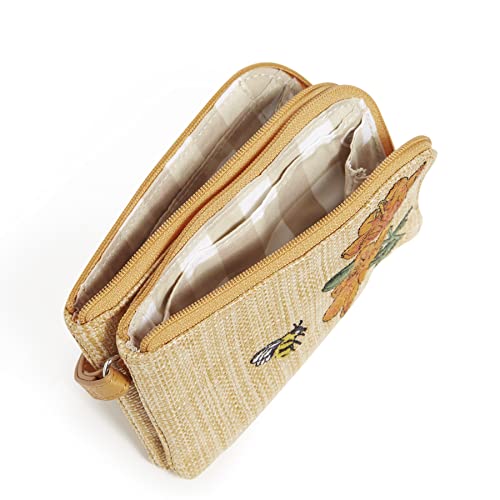 Vera Bradley Women’s Straw Double Zip ID Case Wallet With Rfid Protection, Nature Study Neutral, One Size